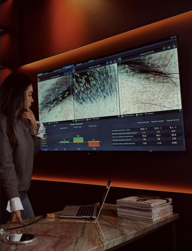 Avaliação com tecnologia de visualização avançada para mostrar ao paciente o potencial resultado do transplante.
